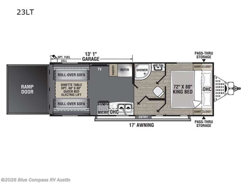 Dual Entry Bath Front Master Bedroom. Dual Entry Bath Front Master Bedroom King Bed Pass-Through St. Two Roll-Over Sofas This toy hauler with 13 1 cargo space can.